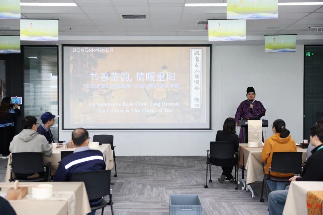 在图书流通站启用后,恰逢重阳佳节,天津空港经济区文化中心为企业职工举办“情暖重阳:翻开《大唐茶圣陆羽》,品读陆羽人生,体验唐代茶法”主题读书沙龙,以馆藏图书为依托,带领企业职工深度研读《大唐茶圣陆羽》,解读陆羽励志人生与中华茶文化底蕴;同时设置唐代茶法体验环节,让职工在实操中感受传统茶文化魅力,实现“书香与茶香”的深度融合,有利于进一步丰富职工的精神文化生活,推动中华优秀传统文化的传播与传承。
