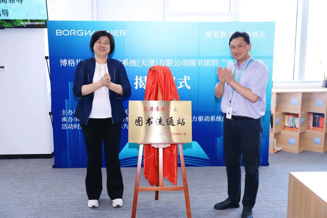 近日,由天津港保税区文教局主办,天津空港经济区文化中心、博格华纳动力驱动系统(天津)有限公司(以下简称“博格华纳”)共同承办的博格华纳图书流通站暨“博”览书角揭牌仪式圆满举行。双方政企代表签署合作协议,保税区文教局副局长薛晓莹与博格华纳总经理张雷共同为图书流通站揭牌,并开展书角参观、共建座谈会,宣告保税区一个崭新的“科技型阅读空间”正式启用,标志着政企合作在推动职工文化建设、共建书香保税方面又迈出了坚实的一步。