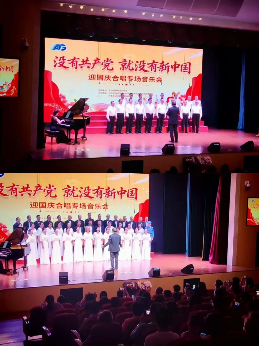 为迎接中华人民共和国76周年华诞,热情讴歌党的丰功伟绩,营造双节假期喜庆氛围,9月29日天津港保税区合唱团在双节即将到来之际,为区域居民送上一台“没有共产党就没有新中国”迎十一合唱专场音乐会,为现场观众带来了一场精彩绝伦的听觉盛宴。本活动由天津港保税区文教局主办,天津空港经济区文化中心、天津港保税区空港学校、天津港保税区空港实验小学联合承办。