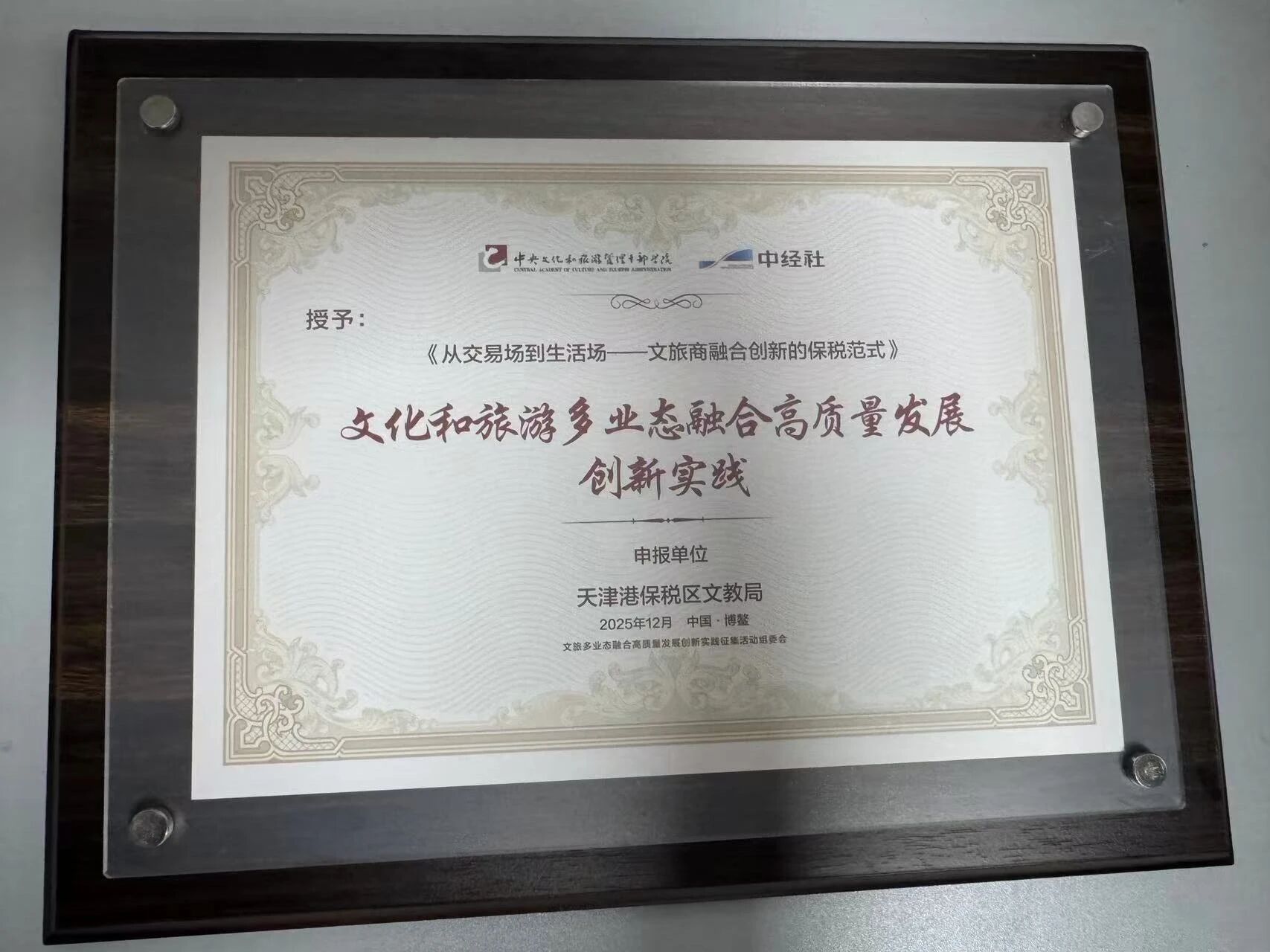 由天津港保税区文教局总结提炼的《从“交易场”到“生活场”——文旅商融合创新的保税范式》案例,在由中央文化和旅游管理干部学院、中国经济信息社联合开展的“文化和旅游多业态融合高质量发展典型案例”征集活动中脱颖而出,荣获全国性创新实践称号。