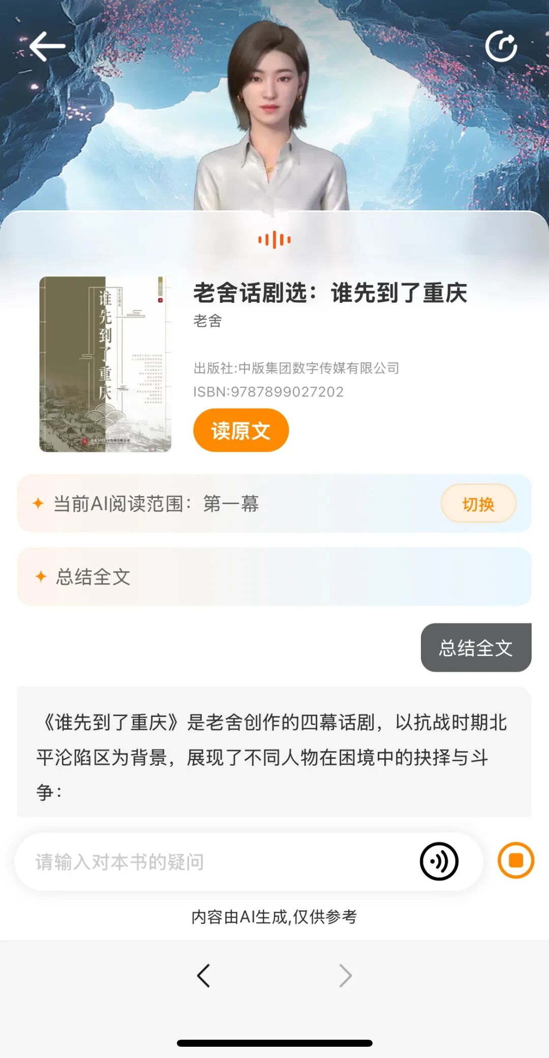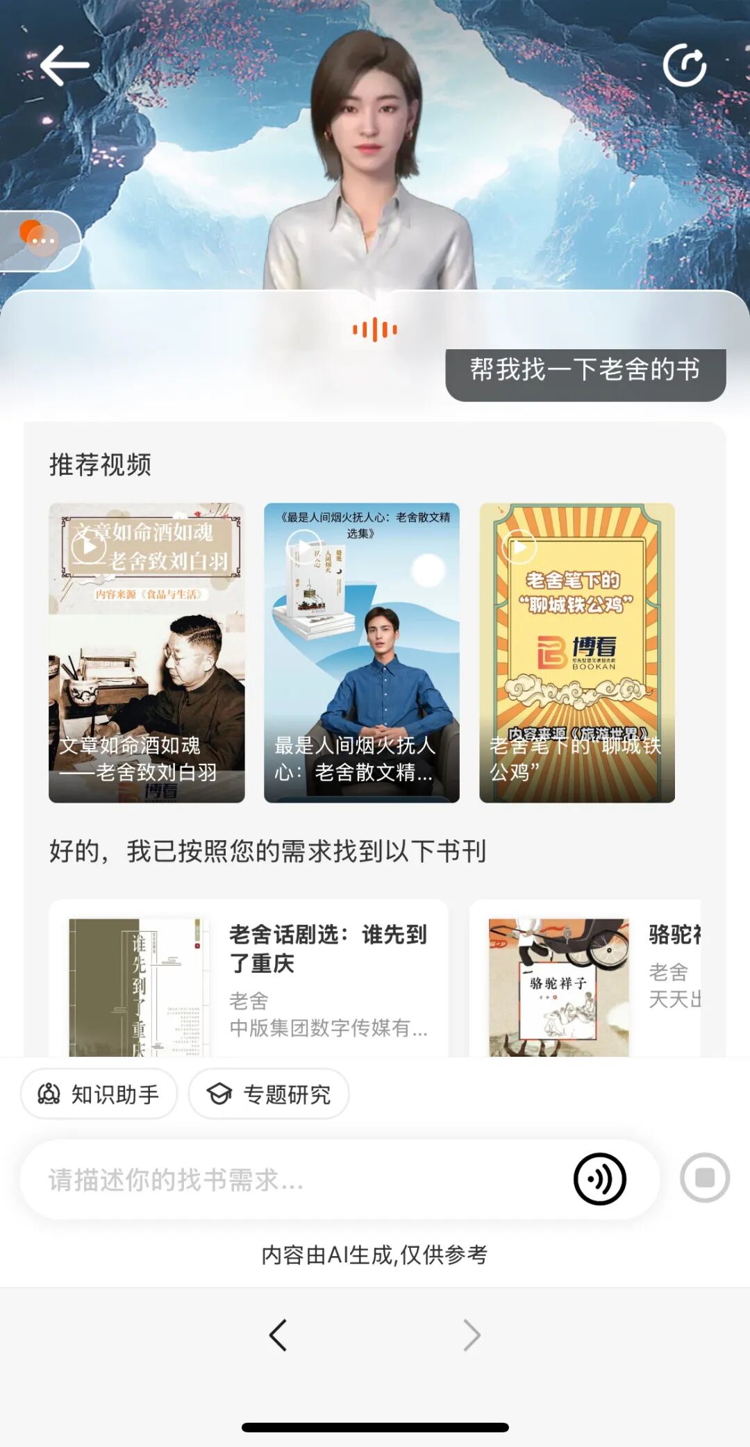 文化中心整合50000+册热门图书、4000+种畅销期刊、10万小时有声听书等海量资源,AI阅读助手可实时解析书籍难点、总结核心观点,还能为读者推荐个性化书单,提升阅读效率与体验。