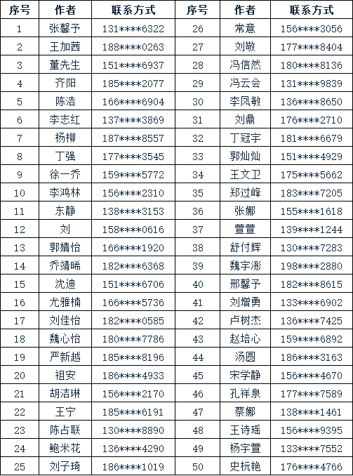 所有提交的新年寄语作品在活动平台上集中展示,依据作品点赞数排序,评选出网络人气奖50名,现将获奖名单公布如下:
