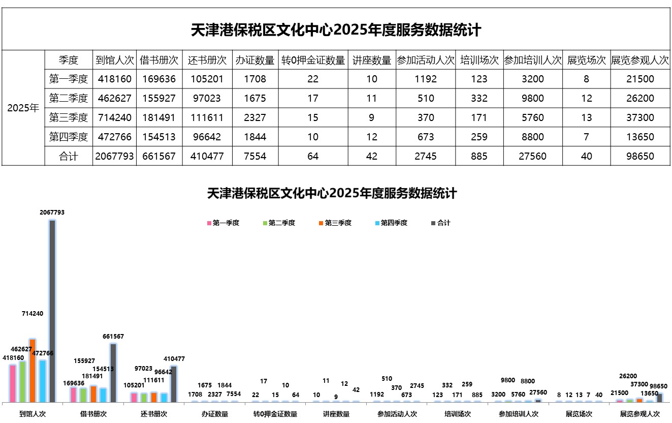 天津港保税区文化中心 2025年度服务数据统计