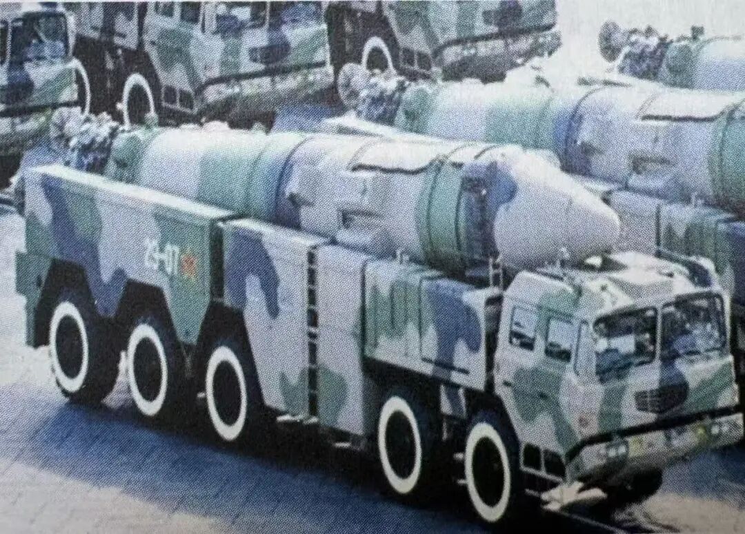 东风-41型导弹,重量为63.5吨,射程为12000-15000千米,最多可配备10枚核弹头,飞行速度25马赫,圆周概率误差100-200米。该型导弹采用分导式多弹头,西方目前的技术是无法拦截的。