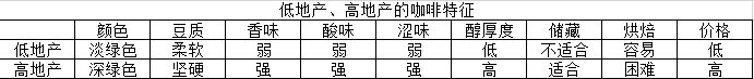 一般认为高地出产的咖啡品质较佳。中美洲地区各咖啡生产国因为有山脉自大陆中央穿越,它们会以“标高”作为分级标准。例如危地马拉的SHB(取Strictly Hard Bean的前缀缩写而来),七等级中的最高级即称SHB,代表它的产地高度约为海拔1370米。